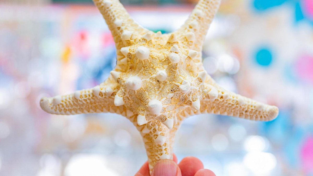 a hand holding a starfish inside the Florida Shell Shop in Treasure Island