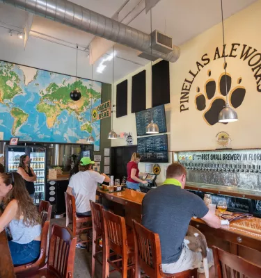 This 15 barrel brewery is located in the popular Grand Central District of St. Petersburg. Often referred to at "PAW" - this dog friendly (and dog-focused) brewery features a welcoming courtyard area with giant games, great tunes and a cozy tasting room with TVs. Local ingredients are used to brew their beer whenever possible. Popular brews include Puppy Love NESIPA, Milk Bone Sweet Stout, Piddle Pilsner and Harold's St. Pete Style Lager. The tasting room and courtyard are open Monday - Thursday 3-10 p.m., Friday-Saturday 12 p.m. to midnight, and Sunday 12-8 p.m.
