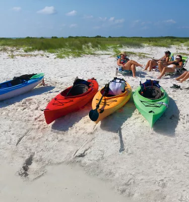 Launch a powerboat from the park's ramp to fish the waters of the Gulf, or slip your kayak in the water (rentals available onsite) and follow a well-marked paddle trail. Two fishing piers with full-service snack bars, as well as concessions that rent everything from sit-on-top kayaks to four-wheeled, surrey-style bikes, means you’ll never run out of things to do.