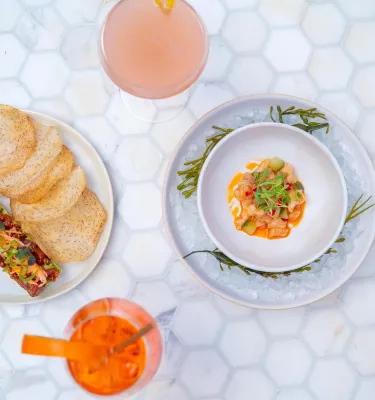 Perry’s Porch offers indoor and outdoor seating with views of skyline and waterfront, and a pleasing array of eats all day long. The restaurant serves coffee and pastries in the morning, and then lunch, dinner, and cocktails. Cheers for the gelato cart! Already, the charred octopus starter is winning rave reviews (it's the aji amarillo romesco!) and guests say the baked oysters with smoked pancetta and grana padano cheese are the best they’ve ever had. A shout out to the burrata salad with melon and beets, too.