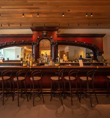 The massive bar in the Canyon Cafe was salvaged from a Western saloon.