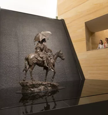 The upstairs galleries are grouped by theme and splashed in bold colors that represent the tones of the Southwest. Start in the Introductory Gallery, filled with more figurative bronze sculptures of 19th-century Native American leaders as well as large-scale paintings that depict the West's majestic landscapes.
