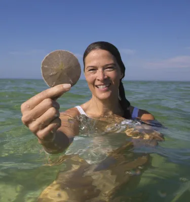Find sand dollars and rare shells along the sparkling shores of undeveloped Shell Key.