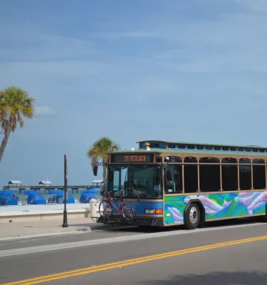 Suba no Suncoast Beach Trolley para visitar as praias do Golfo.