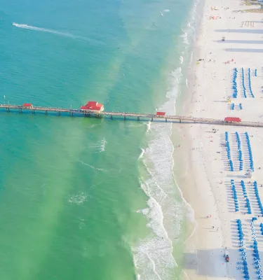 Clearwater Beach is beloved for its sugar sands and clear green-blue waters.