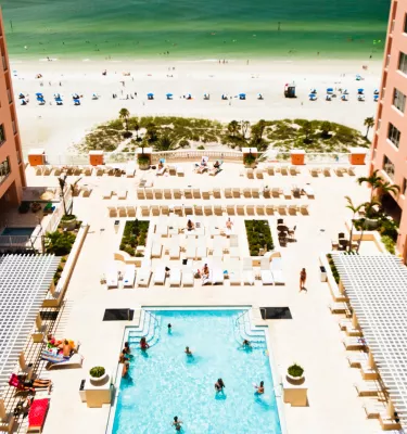 One of the first things you notice on the way to Clearwater Beach is the towering, pink-hued Hyatt Regency Clearwater Beach. Stay here for spectacular views and amenities.
