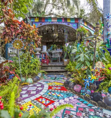Los amantes de todo lo inesperado y ecléctico no querrán perderse Whimzeyland en Safety Harbor , donde elaborados mosaicos de bolas de bolos, vidrios de colores y otros elementos cubren cada superficie, desde un VW Bug hasta estatuas tiki. Para ver más arte increíble, pasee por el Safety Harbor Art & Music Center , donde una escultura de elefante de tamaño natural adornada con mosaicos recibe a los visitantes.