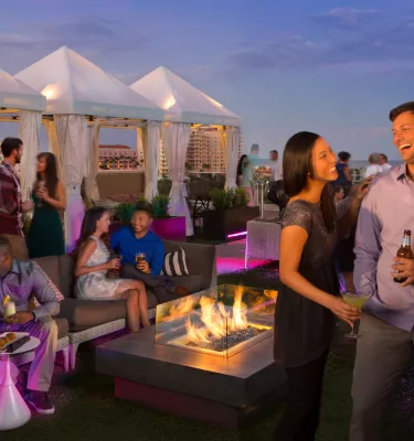 Cuando se pone el sol en St. Pete, la diversión continúa. Central Ave. es el hogar de muchos clubes y bares, incluidos Enigma , Mandarin Hide y Emerald Bar . ¡Incluso hay un bar para perros ! Cervecerías como Green Bench Brewing y 3 Daughters Brewing salpican el centro, muchas de ellas con cervecerías al aire libre, juegos y entretenimiento. En Beach Drive, The Canopy Rooftop Lounge es el lugar ideal para disfrutar de un cóctel con una vista inigualable de la costa de St. Pete. Para música en vivo en un ambiente íntimo, Jannus Live ofrece una gran lista de bandas de gira.