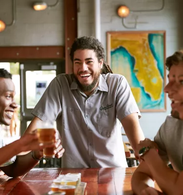 En el distrito de las artes de St. Pete's Warehouse, 3 Daughters Brewing Co. tiene una extensa lista de grifos, música en vivo y muchos juegos divertidos en el interior y al aire libre.