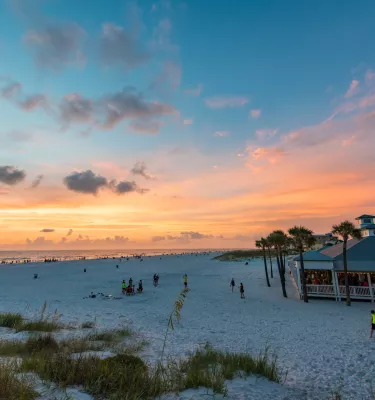 People on the beach outside of Palm Pavilion Beachside Grill & Bar Exterior