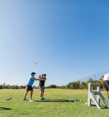 Charlaine Tatz, PGA Teaching Professional at Twin Brooks coaches a player on her swing