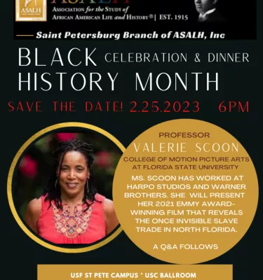 The St. Petersburg branch of the Association for the Study of African American Life and History celebrates Black History Month with a special dinner featuring an address by Valerie Scoon, professor at the College of Motion Picture Arts at Florida State University. Scoon will present her 2021 Emmy Award-winning film, which explores North Florida’s once-invisible slave trade. Advance tickets for the event, which will be held in the USC Ballroom on the University of South Florida’s St. Petersburg Campus, are $60.