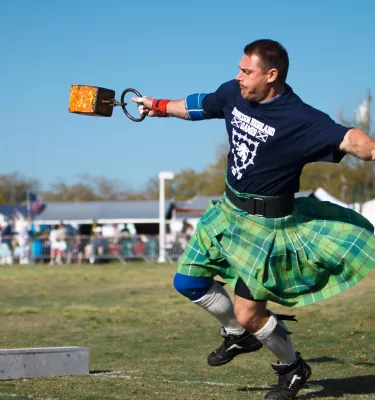 Scottish heavyweight athletics are a favorite, with events tossing cabers and sheaf bags. Large stones, hammers, and weights are also thrown in good-hearted sport.