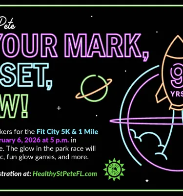 Get ready to shine! The annual Fit City 5K & 1 Mile Walk returns to downtown St. Pete on Friday, February 6th. Healthy St. Pete, a division of the St. Petersburg Parks and Recreation Department, is hosting the 9th annual Glow in the Park themed event with activities for all ages starting at 5:00 pm in Vinoy Park.