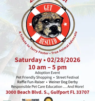 Gulfport’s Get Rescued Animal Rescue Festival & Fun-raiser returns for its 22nd year on Saturday, February 28th from 10am to 5pm at Beach Boulevard S in Gulfport!