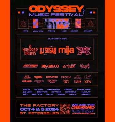 Odyssey Music Festival (OMF) is thrilled to announce its highly anticipated return for the 3rd consecutive year, promising an even bigger and better celebration of art, music, and culture. Set against the vibrant backdrop of St. Pete, this year's festival will take place at The Factory on October 4 & 5th, 2024.