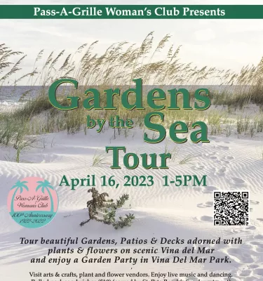 PAGWC's Gardens by the Sea is a dock and garden tour of eight docks and gardens on the island of Vina del Mar in the historic St. Pete Beach community of Pass-a-Grille. The tour will be open to the public from 1:00 - 5:00pm on April 16, 2023. Tickets prior to the event are $15.00 per person and can be purchased on eventbrite.com.