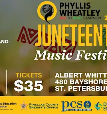 The Phyllis Wheatley Rise to Read Campaign will be hosting a Juneteenth Music Festival from 4 p.m. to 9 p.m. at Albert Whitted Park - 480 Bayshore Drive, in St. Pete!