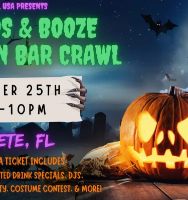 The Boos & Booze Halloween Bar Crawl is creeping into St. Pete on Saturday, October 25th — and it’s going to be bigger, spookier, and more BOOzy than ever!