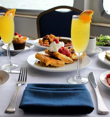 Come aboard Yacht StarShip for the ultimate Sunday brunch experience. Enhance your experience by adding $10 bottomless mimosas on board. Set sail as you sip on endless mimosas and enjoy a specially-prepared brunch with friends and family. Unwind from the week and relax on the water while you take in the views of the Clearwater bay. After brunch, enjoy dancing and DJ Entertainment on the top deck while you cruise the waters of Tampa Bay!