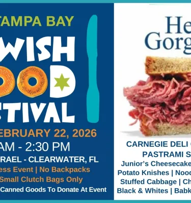 The Tampa Bay Jewish Food Festival is back! Join us on Sunday, February 22nd at Temple B'nai Israel in Clearwater for the tastiest food festival around.