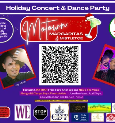 Motown, Margaritas & Mistletoe is a high-energy concert and dance celebration filled with music, magic, and meaning! Join us Tuesday, December 2nd at 7:00pm at Mugs Sports Bar & Grill (ICOT Center, Largo) for a night overflowing with rhythm, laughter, and holiday soul.