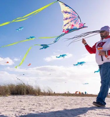 If your winter calendar could use a little color (and a whole lot of joy!), set your sights on Treasure Island along Florida’s Gulf Coast for the Treasure Island Kite Festival, happening January 16–18, 2026. Set against the wide, breezy beaches behind the historic Thunderbird Beach Resort (note: the hotel is currently closed), this free, three-day festival turns Treasure Island’s sandy shoreline into an aerial gallery of motion, creativity, speed and spectacle.