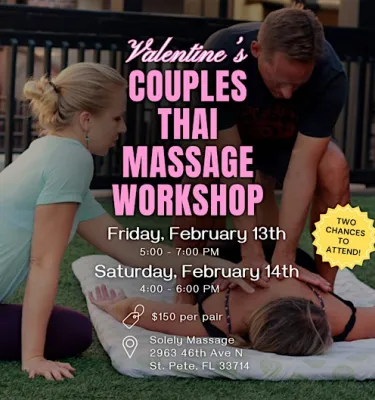 Bring your partner and learn Thai Massage techniques at this unforgettable Valentine's couples event in St. Pete, FL!