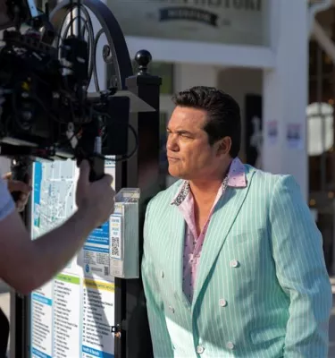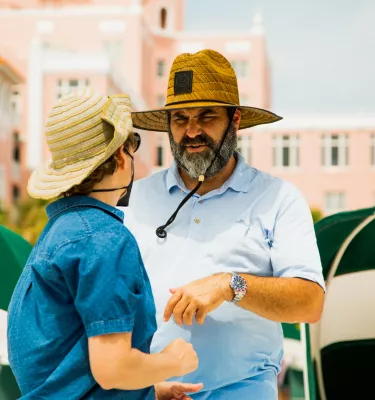 Director Mario Garcia giving direction outside of the iconic Don CeSar Hotel in St. Pete Beach for The Throwback.