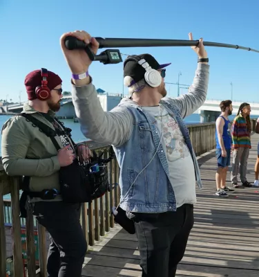 Filming Life's Rewards on the boardwalk in John's Pass.