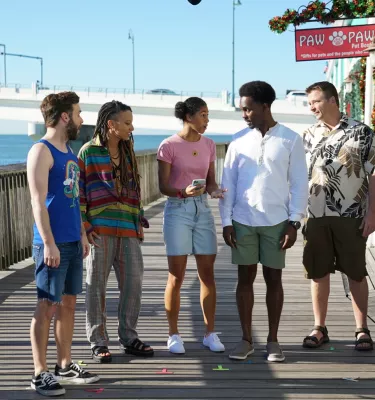It's mostly sunny year-round in St. Pete/Clearwater, which allowed the crew of Life's Rewards to film at a variety of scenes at fun outdoor locations, including the boardwalk at John's Pass in Madeira Beach.