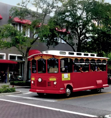 Hop on an old school trolley to get around downtown St. Pete – it's free!