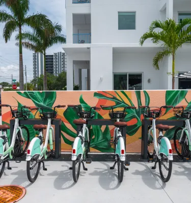 Stylish and smartly designed, Mint House combines the comfort of a boutique hotel with the flexibility of a short-term rental. Sarah loves staying here for its spacious suites, each featuring a full kitchen—perfect for making her morning coffee or a quick bite between outings. Located in the heart of downtown St. Pete, it’s just steps from her go-to coffee shops, markets, and nightlife. With sleek modern interiors, walkability to everything, and a laid-back yet elevated vibe, it’s ideal for weekend escapes, solo staycations, or long-haul creative retreats.