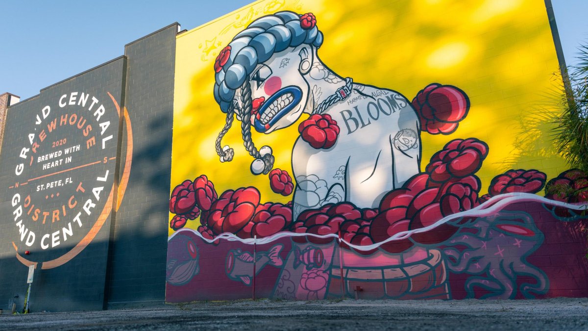 Known as an LGBTQ+ haven, the Grand Central District, just west of downtown, offers some of the best mural-spotting in St. Pete.