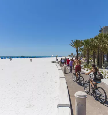 Get inspired by the historic Fort De Soto Park in Tierra Verde as you traverse its nearly seven-mile, paved trail. Ogle the pooches at the dog park, fish from the pier and catch a glimpse of some the Gulf's most beautiful beaches. Start at North Beach, head south and explore the shorter nature trails off the main paved one. It costs $5 to get into the park, but it’s worth it for a full day at this nationally recognized gem. The paved multi-use trail also offers access to other areas (some with soft sand, others more hard-packed) that can be accessed on foot or wide-tire bikes.