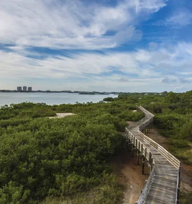 Stroll along the winding boardwalk amid mature trees, and see wading birds and other wildlife at pristine Boca Ciega Millennium Park.