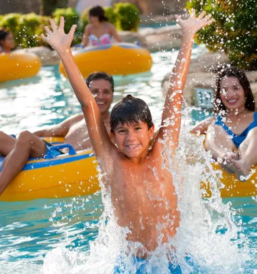Located right across the street from Busch Gardens® Tampa, Adventure Island's 40 acres of water-drenched fun in the sun feature the ultimate combination of high-speed thrills and tropical, tranquil surroundings for guests of all ages. Within a soothing Key West atmosphere awaits an unrivaled blend of slides, corkscrews, waterfalls, a wave pool, children's water playground and other family attractions. Adventure Island also features outdoor cafes, picnic and sunbathing areas, gift shops and a championship sand volleyball complex for hours of fun in the sun.