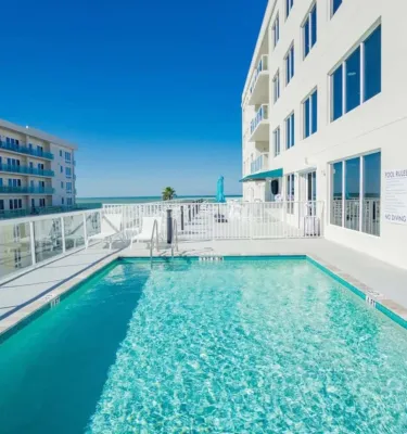 This eight-story boutique hotel has 34 large luxurious two- and three-bedroom suites, each with a private balcony with magnificent views of the Gulf of Mexico, the City of Clearwater, and Mandalay Bay. The 5th floor rooftop pool deck includes a large cocktail bar, lap pool, and sunbathing chairs for you and your guests to enjoy.