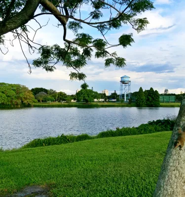 Crescent Lake lies at the center of our neighborhood, surrounded by the beautiful 56 acre public park. East of the lake is the "Great Banyan Tree", a living "jungle gym" for generations of our children. It is featured on the neighborhood logo. To the south is Huggins-Stengel Field, a baseball field that was once the Spring Training home for the New York Yankees. Next to it is the neighborhood's most visible landmark, a 1923 water tower, repainted as a giant salt water aquarium by local muralist, Tom Stovall.