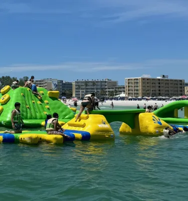 TradeWinds' 15,750 square foot Floating Water Park is located in the Gulf, just off shore behind Island Grand at TradeWinds. Relax and float in Florida's warm waters as you and your kids enjoy inflatable slides, floating trampolines, chill-out loungers and floating cabanas. It's Florida's ultimate beach splash!