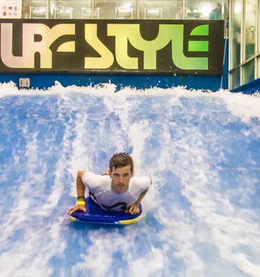 Rain or shine, you can ride the waves! The FlowRider is an indoor surfing experience, located at Surf Style on Clearwater Beach's Beach Walk. The FlowRider is an artifical wave machine with a soft riding surface. Parents shop while the rest of the family enjoys the waves! Only at Surf Style on Clearwater Beach.