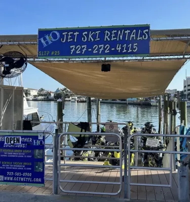 Ready to start your Clearwater jet ski adventure tour? To find us just look for Jet Ski Rentals! You’ll find us at Slip 25 where the causeway meets the Gulf in the Clearwater Marina, just across from Crabby’s. Look for slip 25 and our sign: H20 Jet Ski Rentals.