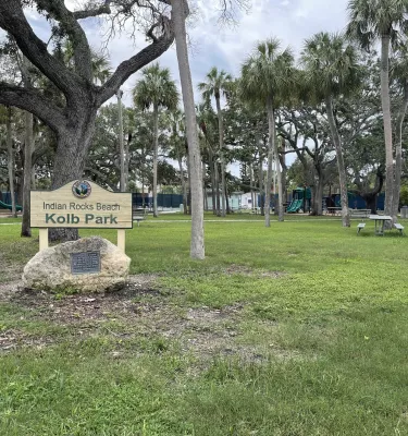 Kolb Park is a local gathering place for events like the Indian Rocks Beach Bluegrass Festival and offers a range of outdoor activities for those looking for a spot for recreation or relaxation in nature. Located in Indian Rocks Beach and close to area dining, this small urban park packs a punch with pickleball courts, tennis, a playground, a skateboard area, and a baseball field—all complemented by convenient amenities like benches, fountains, tables and restrooms.