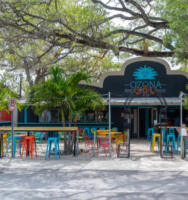 Ozona Brewing Company is a family-owned bar and restaurant in the charming coastal community of Ozona. The brewery offers a laid-back atmosphere, a nice selection of beers and ciders on tap, and a full menu featuring juicy burgers, pizzas, sandwiches and sharables for the table. After dinner and drinks, you can take a short walk or ride to the Speckled Trout Marina to see breathtaking sunset views or the warm glow of golden hour.