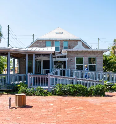 Woman walking up the ramp to enter the Palm Harbor Museum