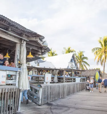 Enjoy cold drinks and island appetizers at their 70-foot waterfront bar! Fresh seafood, live music daily, drink specials, at "The Hut". Sculley's, which is upstairs, features waterfront dining, and outdoor seating.