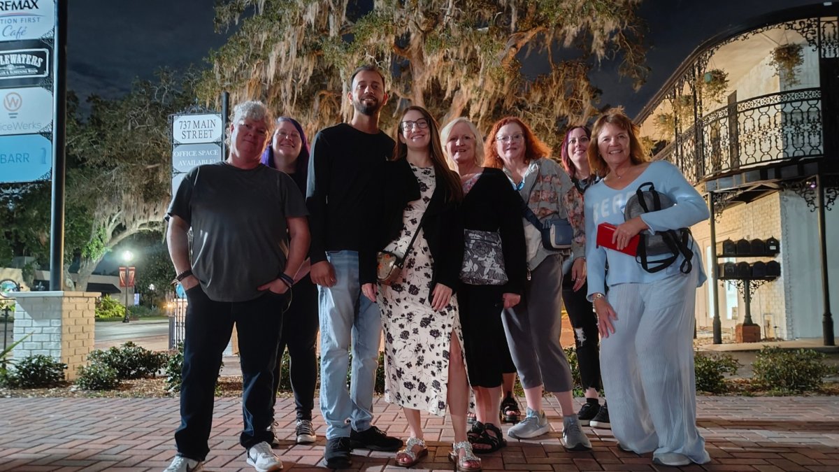 Guests on a Safety Harbor Ghost Tour in Historic Downtown