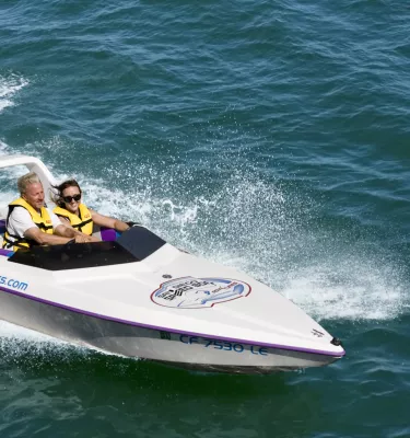 Experience the adventure of a lifetime on our Speed Boat Adventure Tour. A guided and narrated Tampa Bay Tour with a twist. You are able to navigate and captain your own speedboat for the entirety of the tour while following our trained and knowledgeable guides to experience the best of both worlds – the THRILL of driving your own speedboat, and the safety of having a skilled guide introduce you to the beauty of Tampa Bay. The witty yet historical narration is done through two-way communication systems mounted in each boat.. This 2 hour tour will take you by beautiful National Wildlife Refuges and pass by the historic Fort de Soto Park. You may see pods of bottle nose dolphins, manatees, gopher tortoises and numerous varieties of local birds. Book a tour today to guarantee an unforgettable experience for the whole family! Group Rates & Discounts Available!