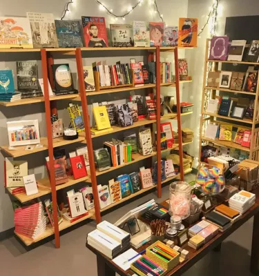 Like a tombolo is the sea, this bookshop's purpose is to be a bridge to new worlds through discovery of new books, authors, readers and friends. Great books are within reach in this tiny, fascinating store. Old-fashioned but usable typewriters are mixed throughout to type a note or poem for the next guest.