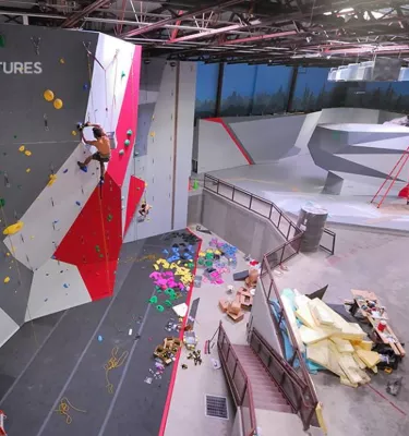 40 foot tall routes, 10,000 square feet of climbing, 80+ climbing lines and Dedicated training area